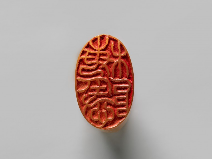 此印章以田黄类皂石为材质,尺寸为高 4.4 厘米、宽 3.2 厘米、深 1.9 厘米。印钮雕刻兽形纹饰,线条流畅,神态逼真,将田黄温润细腻的质地与生动的兽钮造型巧妙融合,兼具钤印的实用功能与玉石雕刻的艺术价值,充分体现了 18 世纪田黄印章在材质选择与雕刻工艺结合上的精湛水准与独特韵味。