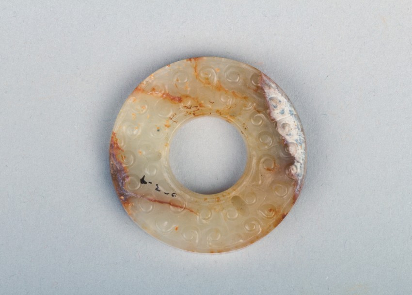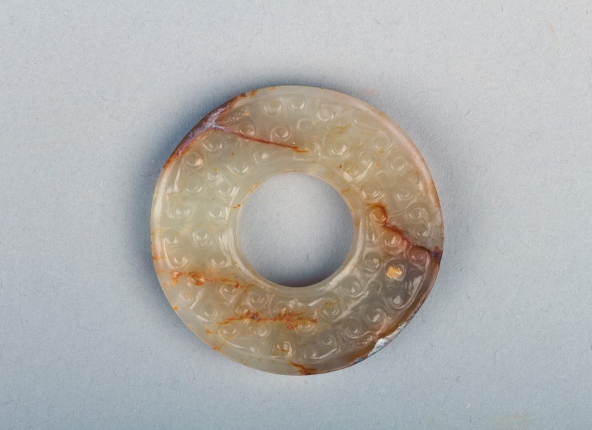 战国时期,玉器工艺高度发达,玉璧作为重要的礼器与佩饰,象征着尊贵与礼仪。谷纹作为当时玉器的经典纹饰,寓意五谷丰登,反映了农耕社会的文化内涵。此玉璧的纹饰与材质,为研究战国时期玉器工艺的发展及社会礼仪文化提供了实物依据。