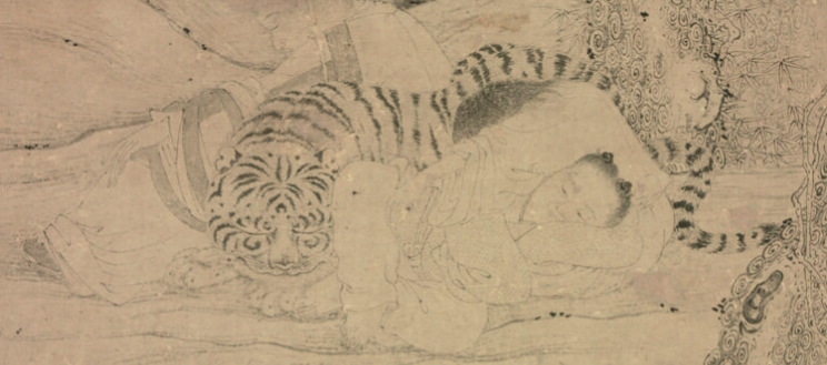 元代,佛教和道教都有一定的发展,且呈现出思想交融的态势。“四睡图” 这一题材,多描绘的是唐代高僧丰干、寒山、拾得与虎同睡的场景,这三位高僧是佛教禅宗的代表人物,而老虎在传统文化里也带有神秘色彩。在元代,佛道两教的一些理念相互渗透,这种题材的绘画体现了当时宗教界对 “和谐共生”“心性相通” 思想的追求, 无论是佛教倡导的慈悲为怀、众生平等,还是道教主张的顺应自然、天人合一,都能在 “四睡” 这一超现实场景中找到契合点,反映出当时宗教文化交流融合的趋势。