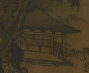 本品面积为 102.1×82.8。绘于绢本之上,以水墨展现山水意境。画面中,山峦以简洁的皴法勾勒轮廓,营造出悠远的空间感,树木葱郁,亭台古朴,一位高士静坐于观景之处,似在思索或欣赏山水。整体风格体现元代山水画追求的简淡、逸趣,借山水表达文人的超脱心境,是研究元代绘画风格与文人思想的重要实物。