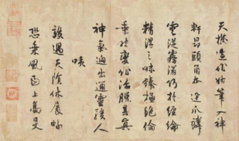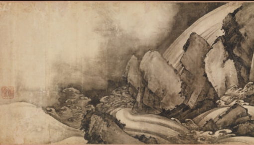 本品面积为 45.2×299.5,是陈容的经典之作。绘五条龙穿梭于山水云雾间,龙身矫健,或隐于云气、或腾于江海、或盘于山峦,与瀑布、山石、林木相融。 龙的形态各异,有的张牙舞爪,气势汹汹;有的含蓄内敛,伺机而动,展现出 “神龙见首不见尾” 的神秘,山水作为背景,烘托出龙的威严与奇幻。以水墨为主,运用 “泼墨成云,噀水成雾” 之法,墨色浓淡变化表现云气、水瀑的流动感。 绘龙时,线条刚劲灵动,勾勒龙身轮廓、鳞片纹理,兼用渲染,让龙的肌肤、鳞片有质感,体现陈容 “所翁龙” 独特的笔墨风格,将水墨写意与精细描绘结合,使龙鲜活如生。借龙的形象,营造出雄浑、神秘、奇幻的意境。龙在山水间腾挪,似能呼风唤雨, 传递出中国人对龙这一祥瑞神兽的敬畏与崇拜,也体现画家对天地造化、神力无穷的想象,观之如入仙境,感受水墨龙画的磅礴气势与艺术魅力,是中国龙题材绘画的巅峰之作。