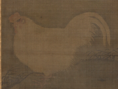 本品面积为96.3×42.4。绘一只竹鸡,姿态安然,立于坡石。旁有竹叶、竹枝,以简洁笔墨勾勒, 竹叶疏朗,竹枝劲挺,营造出静谧的自然小景,背景大面积留白,突出主体,传递出 “空寂” 之感。以淡墨、简笔为主,竹鸡形态简约, 线条概括却生动,抓住其神韵;竹叶、竹枝用率性的笔触描绘, 体现 “逸笔草草” 的禅画风格,借水墨韵味表现物象,不求形似但求神似,契合画僧 “以画悟禅” 的创作理念。借竹鸡的宁静、竹枝的清幽,营造出孤寂、空灵的禅意氛围, 似蕴含对 “空性”“无常” 的思考,体现宋末元初禅僧画家借物言禅、以画表意的追求, 是研究萝窗艺术及禅画风格的重要作品, 虽画面简洁,却满含深邃的精神内涵与艺术感染力,展现东方禅意美学的独特魅力。