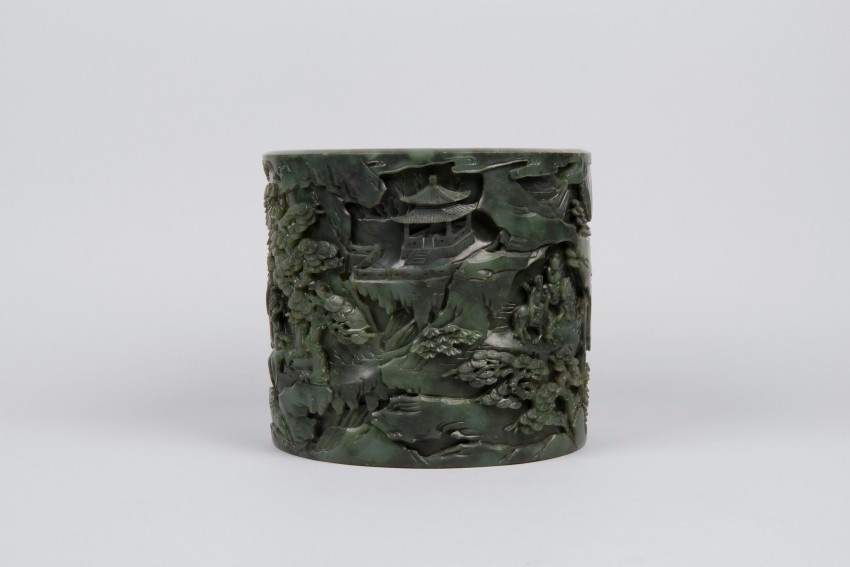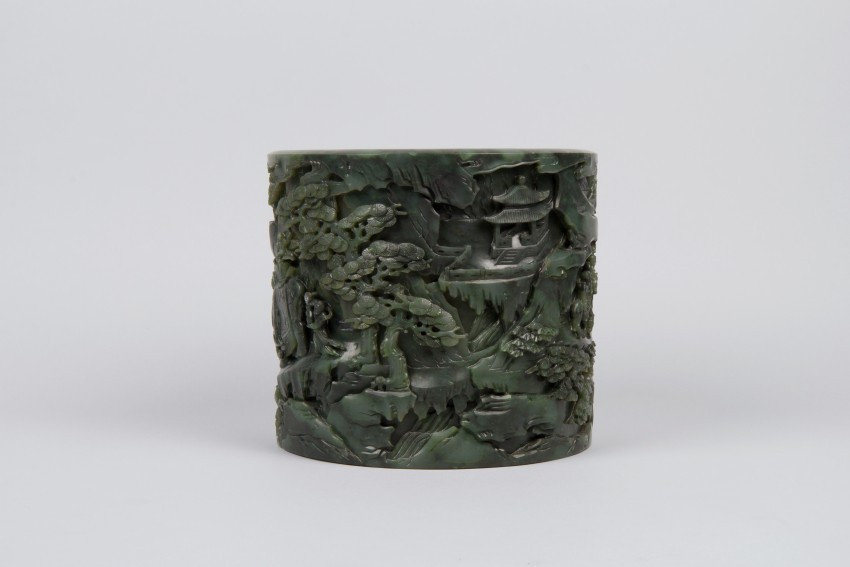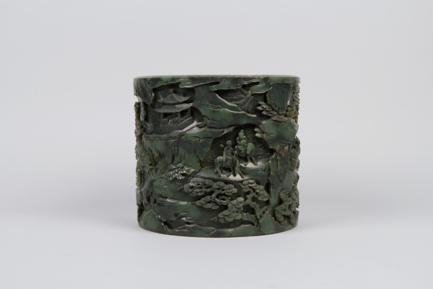 蛮进宝图碧玉笔筒