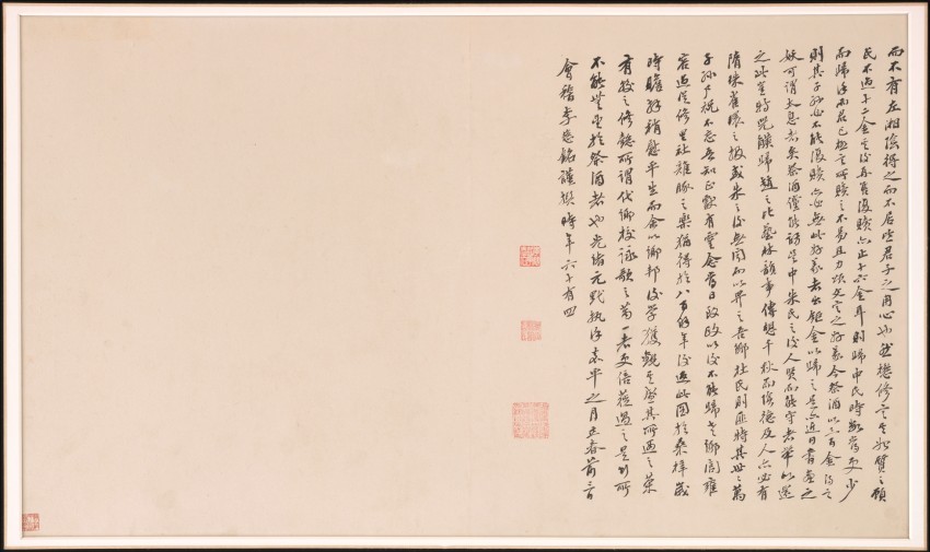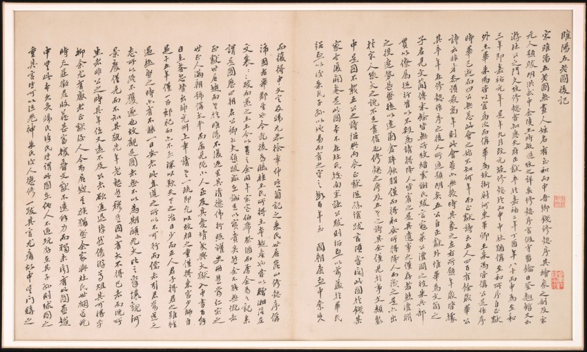 此为北宋至清代的《睢阳五老图引首题跋册》,由多位学者(11 至 20 世纪)参与创作,属十五页册页,材质为纸本水墨。整体连裱(每张双叶)尺寸为 48.3×81.3 厘米,现藏于美国大都会博物馆。作为《睢阳五老图》的引首及题跋合集,它汇集了不同时期学者的墨迹,既承载着对原图的注解与评述,也展现了历代文人的书法风格与思想交流,兼具文献价值与艺术价值。