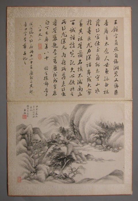 清初画坛延续明末文人画传统,“清初八大家” 作为当时重要的绘画群体,在继承前代山水技法的基础上,形成了兼具复古与创新的风格。此画册汇集多位名家之作,以山水为主题,既体现了对传统笔墨的传承,又反映了清初文人画家对自然山水的审美表达,是研究清初绘画流派与群体创作的重要实物。