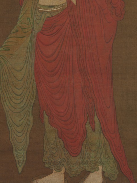 南宋佛教艺术盛行,宁波作为当时重要的佛教文化中心,涌现出一批擅长佛画的职业画家,张思恭便是其中代表(工于罗汉佛尊,风格存西域遗风)。此画通过精细的笔触与宗教意象,既体现了南宋佛画的写实功底,又反映了净土宗对 “西方极乐世界” 的想象,“云流水” 衣纹则展现了中外文化的交融。画作创作时间推测在 1195-1277 年(宁波称 “庆元府” 时期),是研究南宋佛教绘画风格、区域艺术特色及宗教传播的重要实物。
