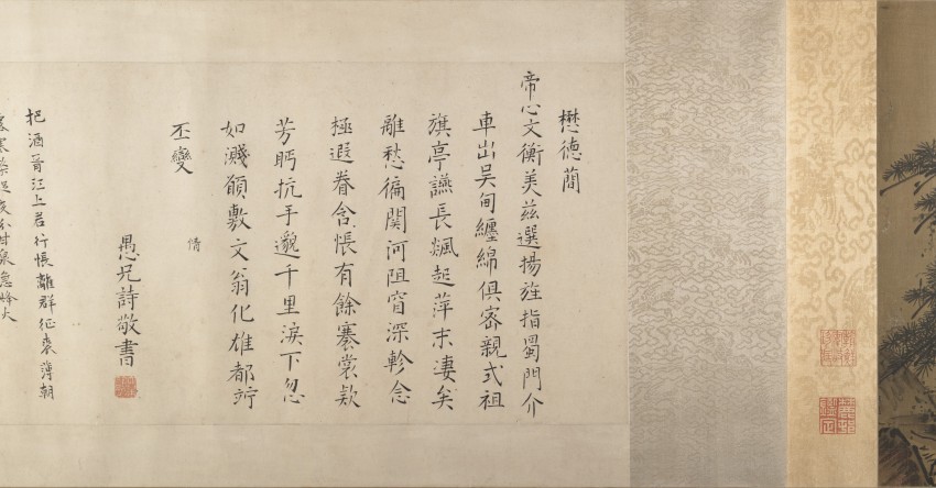 此为明至清时期佚名所作的仿夏珪风格山水画卷(伪款李远),属手卷,采用丝绸水墨绘制,尺寸为 36.5×177.2 厘米。画作以 “风景” 为主题,仿南宋画家夏珪(活跃于约 1195–1230 年)的 “江山清远” 风格,卷中包含题诗文字(如 “愚兄詩敬書” 等),现藏于美国大都会博物馆。所谓 “李远” 实为伪款,李远本为清代诗人、书画家(字君宏,益都人,代表作《拙斋集》),此作并非其真迹。