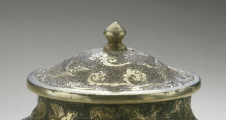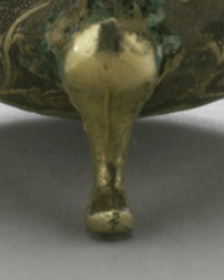 香炉呈扁圆形,鼓腹,底部有三只兽形足, 支撑起整个器物,使其显得稳重而灵动 。带盖设计,盖顶有一个小巧的钮,方便开启香炉盖。香炉通体装饰有精美的錾花图案, 腹部的纹饰丰富多样,可能有花卉纹、云纹、瑞兽纹等, 线条流畅细腻,图案栩栩如生 。香炉盖上也有錾刻的花纹, 与腹部纹饰相呼应,整体装饰风格协调统一 。以银为主要材质, 表面采用鎏金工艺,将金汞合金涂抹于银器表面, 经加热使汞蒸发,金便附着于银器上, 让香炉呈现出金银交辉的华丽效果 。虽历经岁月,鎏金层有一定磨损,但仍能看出其昔日的精美华贵。
