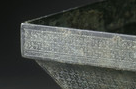 这件青铜簠呈长方体形状,口大底小,斜壁, 有盖,合盖后呈长方体或近似长方体状器身线条规整,展现出庄重、肃穆的气质。底部有矩形的足, 足上往往有镂空等装饰设计,增加了器物的稳定性与美观性 。有的青铜簠足部造型较为复杂, 这件器物的足部相对简洁,带有一定的镂空效果。