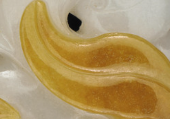 本品规格为3.81 x 5.72 x 1.27 厘米。运用了镂空雕刻技法,工匠通过精准去除玉料的部分区域,塑造出多层次、通透的立体效果。使得图案线条流畅且富有动感,展现出高超的空间把控能力和精湛的雕刻技艺。