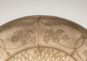 本品规格为高度3.02厘米,直径19.05厘米。整体造型为圆形,这在古代玉器中较为常见,圆形在中国传统文化中有团圆、圆满的美好寓意 。玉盘边缘圆润光滑,整体线条流畅,给人一种和谐、规整的美感。纹饰丰富且精美,盘心的放射状花纹类似菊花花瓣,层层叠叠,富有韵律感;盘边缘环绕着花卉纹饰,花卉形态逼真,枝叶舒展自然 。这些纹饰不仅具有装饰性,还反映了当时人们对自然之美的欣赏和追求。