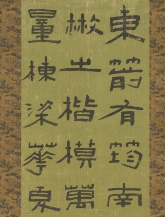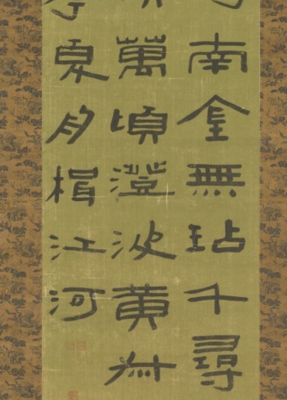陈鸿寿是 “西泠八家” 之一,在篆刻与书法领域成就突出,其隶书风格独特,兼具古朴与灵动。清代书法流派众多,隶书复兴是重要现象,此轴体现了他对汉隶传统的继承与创新,反映了清代文人 “诗书画印” 兼修的文化风尚。作为官员兼艺术家的作品,其书法既展现了文人的笔墨修养,又暗含官场文化中的雅趣追求,是研究清代隶书发展及文人艺术多元性的实物参考。