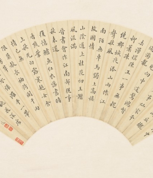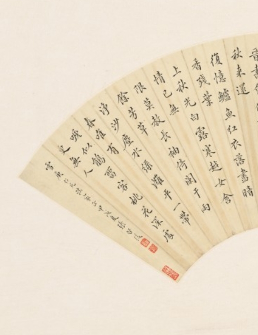 晚清民国时期,书法仍是文人修养的重要体现,扇面作为便携的书画载体,兼具实用与艺术价值。张启后作为科举出身的官员兼书法家,其作品融合传统文人书法的严谨与时代变迁中的笔墨意趣,内容以诗歌为主,既展现了深厚的文学功底,又反映了当时士人对传统艺文的坚守。此作是研究晚清民国官员书法风格及扇面艺术形制的实物参考。