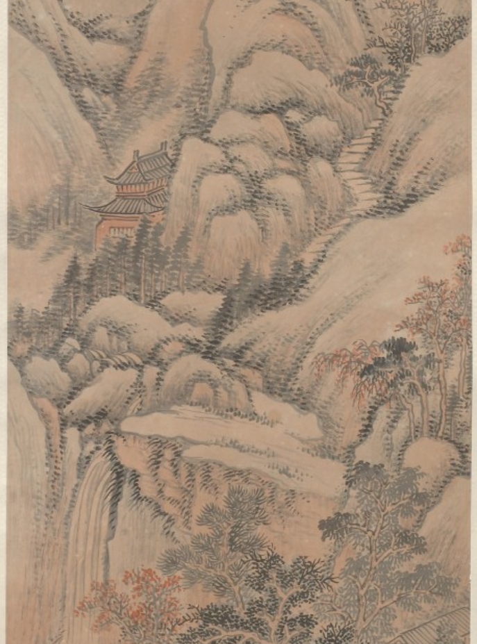 此为清代张熊创作的《丛树晤语图》轴,属立轴,采用纸本水墨设色绘制。图像尺寸为 138×36 厘米,整体连裱 220×52.5 厘米。张熊(1803—1886),又名张熊祥,字寿甫(亦作寿父),号子祥,晚号祥翁,别号鸳湖外史、鸳湖老人等,室名银藤花馆,秀水(今浙江嘉兴)人,青年时移居上海,积极参与各类美术活动。此画以 “风景” 为主题,现藏于美国大都会博物馆。
