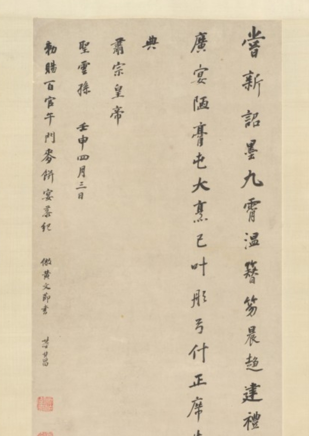 明代书法注重师法晋唐,董其昌作为集大成者,其书法融合各家之长,风格清秀疏朗,对明末清初书坛影响深远。此作以楷书书写赠筵诗句,既体现了文人社交中的艺文表达,又展现了其书法 “中和恬静” 的特点,同时关联其 “南北宗” 画论中对传统的尊崇,是研究明代书法风格、文人社交及董其昌艺术成就的重要实物。