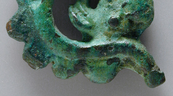 战国时期,人们的审美观念逐渐从商周时期的庄重、神秘,向更加灵动、富有生气的方向转变。双环镂空青铜挂饰通过简洁流畅的线条勾勒出双兽的形态,并且采用镂空工艺增加了层次感和通透感,体现了这一时期人们对形式美和动感的追求。同时,人们对装饰艺术的重视程度不断提高,青铜饰牌作为一种装饰品,不仅具有实用功能,还能满足人们在审美方面的需求 。