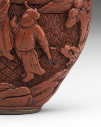剔红属于雕漆工艺的一种,中国的雕漆工艺历史悠久,到清代达到鼎盛。清代宫廷造办处集中了全国顶尖的雕漆工匠,他们技艺精湛,对漆料配方、髹漆层数、雕刻技法等都有深入研究。在漆料方面,能调配出色彩鲜艳、质地优良的大漆;髹漆层数往往可达数十层甚至上百层,使漆层有足够的厚度用于雕刻 。在雕刻技法上,运用浮雕、圆雕等手法,将人物形象、场景刻画得栩栩如生。民间的雕漆工艺也蓬勃发展,苏州、扬州等地成为雕漆制作的重要中心,为剔红人物纹鼻烟壶的大量制作提供了技术支持。