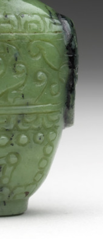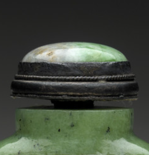清代权贵社交中,鼻烟壶的品质直接影响交往等级。碧玉雕兽面纹鼻烟壶因碧玉稀缺(优质碧玉多产自新疆和田或俄罗斯,需经长途运输)、雕刻工艺复杂,成为 “顶级社交货币”—— 皇帝赏赐亲信、亲王间互赠,均以其彰显情谊与权力纽带。兽面纹的威严与辅首耳的庄重,使递壶、赏壶的过程暗含 “尊卑有序” 的礼仪规范,强化了圈层内的等级认同。