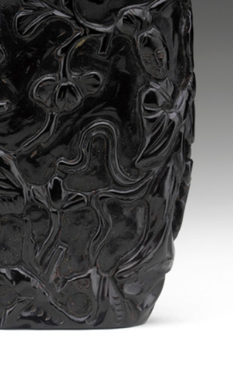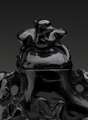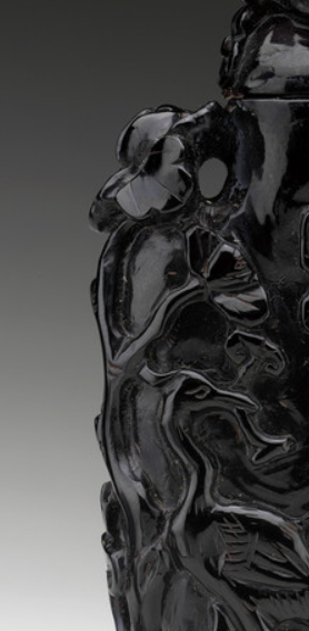 黑琥珀浮雕花鸟纹鼻烟壶