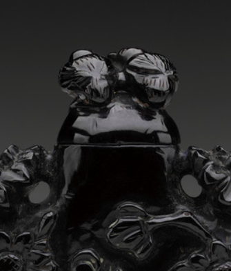 本品高度为8.9厘米,宽度为5.4厘米。壶身满布浮雕花鸟纹饰,花朵形态逼真,花瓣纹理细腻,花蕊清晰可辨;鸟儿或栖息、或飞动,生动展现自然意趣,雕刻工艺精湛,将花鸟神韵融入琥珀材质。壶两侧饰有花朵形耳(带穿孔),增添灵动;壶盖顶端也雕有花朵状装饰,与整体花鸟主题呼应。
