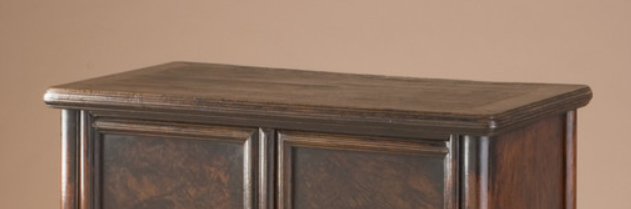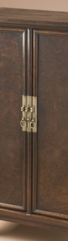 本品规格为柜体106.68 × 69.85 × 40.01 厘米,隔板2.54 × 60.33 × 29.85 厘米和2.54 × 64.45 × 30.48 厘米,黄铜锁配件9.53 厘米。以黄花梨为框架,柜门嵌瘿木,纹理独特。整体为圆角柜造型,线条流畅,柜门配黄铜活页与拉手,古雅精致。黄花梨质地温润,瘿木纹理华美,工艺精湛,尽显古典家具的韵味与质感。