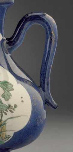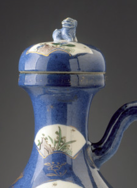 蓝地开光粉彩荷花纹执壶