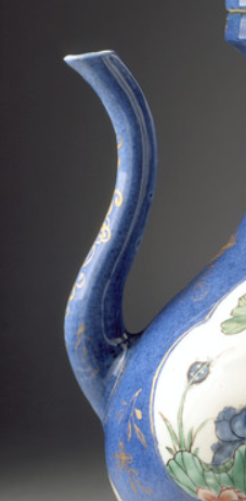 清代审美观念在一定程度上追求华丽、精致之美。蓝地开光粉彩荷花纹执壶通过蓝釉的深沉、粉彩的艳丽以及开光的巧妙布局,营造出富丽堂皇的视觉效果,满足了当时人们对奢华美的追求。 同时,工匠对荷花等纹饰的精细描绘,也体现了对精致之美的崇尚。