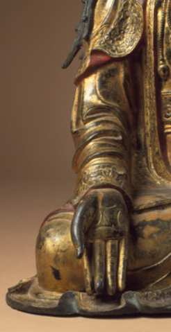 鎏金工艺在明代也日臻完善,能够使铜质菩萨像表面呈现出金光灿烂的效果,不仅增强了佛像的神圣感和庄严感,还能起到保护铜像、防止氧化锈蚀的作用。工匠们熟练掌握鎏金的配方和操作流程,确保鎏金层均匀、牢固且色泽亮丽。