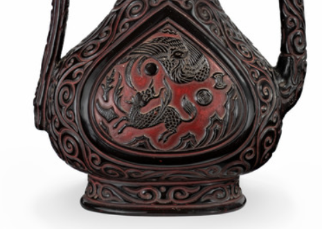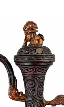 漆雕龙凤纹狮钮执壶
