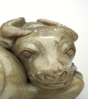 清代文人注重书斋环境的营造,“案头清供”(文房摆件)是雅文化的重要组成部分。沁色玉雕卧牛摆件因其小巧精致(适合把玩)、寓意吉祥,常与砚台、笔筒、镇纸等搭配,为书斋增添自然意趣。文人在读书、作画间隙赏玩玉雕,既能放松身心,又能感悟 “天人合一” 的生活美学。