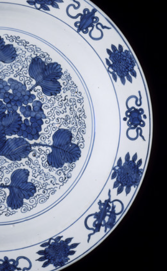 明代绘画艺术流派众多,如浙派、吴门画派等,绘画技法和表现形式不断创新。瓷器装饰图案在一定程度上借鉴了绘画艺术,青花葡萄纹大盘上对葡萄、枝叶的描绘,注重形态的生动性和布局的合理性,这与当时绘画艺术追求写实、注重意境营造的风格相呼应。