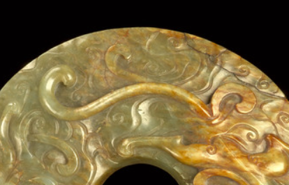 明代文人阶层崛起,“玉” 因 “温润而有节” 的特性被视为君子品德的象征(“君子比德于玉”)。青玉螭龙纹璧兼具观赏性与文化内涵,常被文人雅士作为案头陈设或随身佩饰(部分小型玉璧可系绳佩戴),既彰显主人的文化品位,也在社交场合中传递 “身份对等” 的信号。
