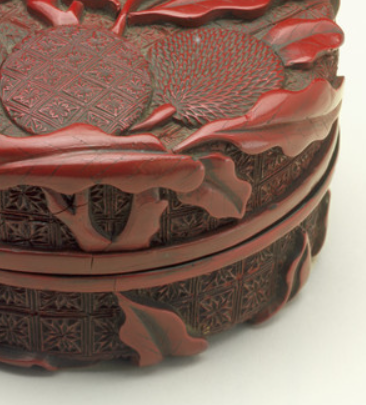 剔红漆器制作耗时费工(单是髹漆就需数月甚至数年),成本高昂,在明代主要为宫廷、贵族及富商阶层所用。一件工艺精湛的剔红荔枝纹圆盒,是使用者财富、地位与品味的体现,普通百姓难以企及。在宫廷或贵族交往中,精致的剔红圆盒可能作为礼品使用,如皇室赏赐大臣、贵族间互赠。其工艺价值与吉祥寓意,使其成为彰显礼仪、联络情感的重要器物。
