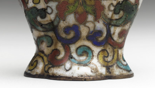本品规格为整体8.26 x 5.72 x 2.86 厘米,盖子3.81 x 1.59 厘米,瓶子7 x 5.72 x 2.86 厘米。壶身以白为底色,掐丝勾勒出多彩缠枝花卉等纹样,蓝、绿、红、黄等珐琅釉色交织,华丽且富有层次。两侧饰兽首耳,搭配环形小耳,增添古朴与精致感。 壶盖为黑色,镶嵌红、绿、透明等宝石,提升华贵气质。