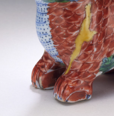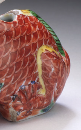 水盂是传统文房 “第五宝”(笔、墨、纸、砚之外),主要用于贮存清水,供研墨时适量添加,明代五彩麒麟形瓷水盂的基础作用即服务于这一实用需求:明代文人以书法、绘画为日常雅事,研墨时需根据墨锭大小、砚台湿度调控水量,水盂的小口、深腹设计便于储存清水,且倾倒时水流平缓,避免过量浸湿墨锭或砚台。麒麟形水盂虽造型独特,但腹部容量适中(通常可容纳 200-300 毫升清水),尾部或背部设注水口,既保持形态完整,又不影响实用功能。