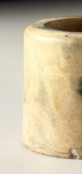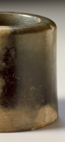 本品规格为2.86 x 3.2 厘米。呈圆筒状扳指形制,线条简洁规整,无过多装饰,保留素面风格,尽显古朴简约之美,契合扳指实用(护指 )与装饰的双重功能 。