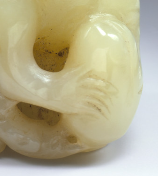 在清代,把件的核心功能是供人手中摩挲把玩,玉雕猴形把件因其玉质温润、造型小巧(通常长 5-10 厘米,便于握持),成为皇室贵族、文人雅士日常 “盘玩” 的器物。清代文人与官员常因科举、仕途压力较大,把玩玉件可通过手部触感缓解焦虑,玉的冰凉质感与温润光泽能带来感官舒适,而猴形的灵动造型则增添趣味,起到 “怡情养性” 的作用。文人聚会或官场应酬时,随身携带的玉雕猴形把件常成为交流话题,其工艺优劣、寓意内涵可彰显主人的审美品位与文化修养,甚至成为身份认同的隐性符号(如官员间以 “封侯” 题材的猴形把件互赠,暗含仕途期许)。