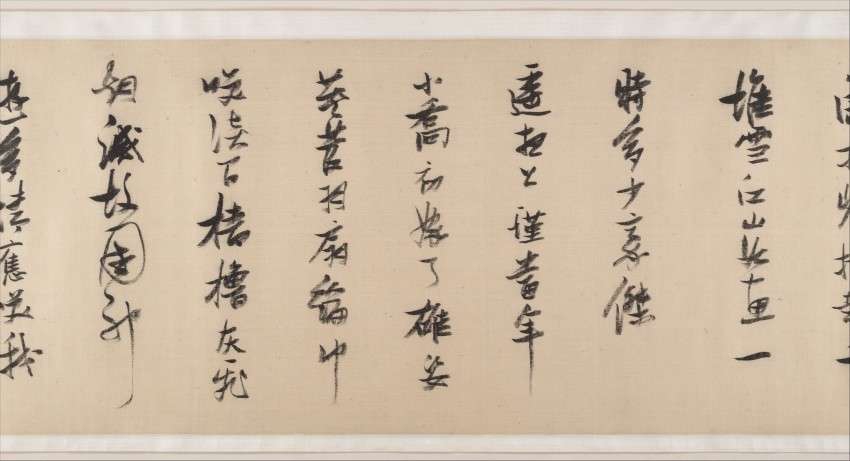 此为明代 1628 年张瑞图创作的《后赤壁赋图》卷,属手卷,采用绢本水墨绘制。图像尺寸为 27.9×320 厘米,整体连裱 31.1×1043.3 厘米。张瑞图(1570–1641),字长公等,福建晋江人,明代画家、书法家,曾官至高位,后因涉魏忠贤案遭牵连。此作以苏轼《二赤壁赋》为插图主题,现藏美国大都会博物馆。