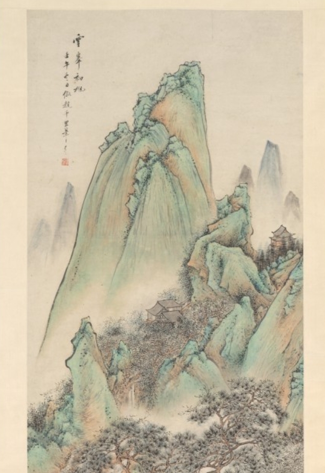 此为清代 1822 年朱昂之创作的《山水》轴,属立轴,采用纸本水墨设色绘制。图像尺寸为 142.2×63.2 厘米,整体连裱 256.9×77.8 厘米,整体带旋钮 256.9×88.6 厘米。朱昂之(1764 年–1841 年后),字青立、津里,江苏武进人,侨居苏州,朱文嵘之子,画学有家传,尤得力于恽寿平、王翚,风格劲峭。此作以 “风景” 为主题,现藏美国大都会博物馆。
