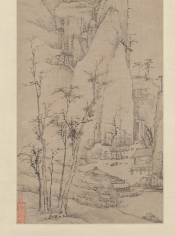 弘仁是明末清初徽派核心画家,明亡后出家为僧,善绘黄山景致,风格干练,呼应元代倪瓒。此仿作虽题其名,却因笔法缺陷显非真迹,仍延续了弘仁对倪瓒线性技巧的借鉴及对黄山险峻风貌的表现,反映了清代对前代画家风格的追摹风尚,也体现了徽派绘画中黄山题材的影响力,是研究清代仿古绘画及弘仁风格传承的实物参考。