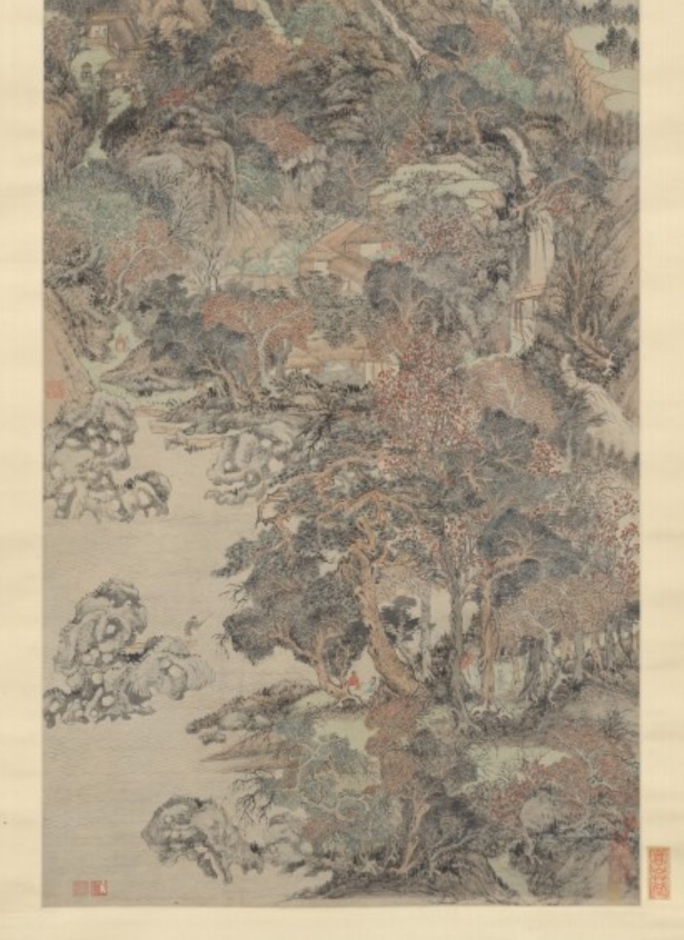 文伯仁是明代吴门画派代表之一,受文徵明影响,兼学王蒙及 “三赵”,形成独特风格。《溪山仙馆图》绘于 1531 年,以饱满构图、繁密皴点再现溪山仙居景致,既延续了吴门画派的雅致意趣,又融入个人巧思,反映了明代中期山水画对传统的继承与创新,是研究吴门画派分支及文伯仁艺术成就的实物参考,也体现了当时文人对山水意境的追求。