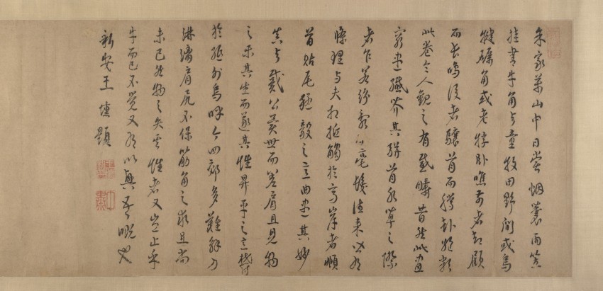 江参是南宋画家,善绘山水,与文人交往密切,此卷虽传为其作,实为宋元佚名仿作。画作以水牛为核心,突破佛教图像中牛的象征意义,聚焦田园生活,反映了宋元时期对世俗生活的关注,体现了当时绘画从宗教题材向世俗题材的拓展,是研究宋元田园绘画题材与民间生活图景的实物参考,也展现了后世对前代画家风格的追摹。