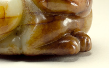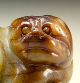 本品规格为3.81 x 6.03 x 3.81 厘米。雕琢成卧兽形态(神似卧犬 ),兽身蜷卧,线条圆润流畅,五官刻画生动,尤其是眼部与面部褶皱,让兽态憨态可掬又不失古朴韵味,雕刻技法细腻,将兽的形态神韵精准呈现 。