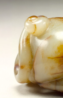 明代文人崇尚 “案头清供”,玉雕卧兽摆件常被置于书房案头、客厅博古架或多宝阁中,与奇石、古铜器、瓷器等搭配,以其温润的玉质、生动的兽形(如卧狮、卧虎、瑞兽等)点缀空间,营造雅致清幽的氛围。