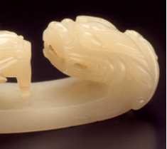 清代服饰中,长袍、马褂等常需束腰,带钩一端(钩首)可勾住腰带另一端的环扣,通过调节钩身与钩首的咬合,实现束紧或放松腰带的功能,兼具便捷性与稳固性。龙首带钩多为男性所用,尤其在官宦、士绅阶层的日常着装或正式礼服中,是束腰必不可少的用具,既满足服饰的实用性,又通过造型设计提升整体着装的精致感。