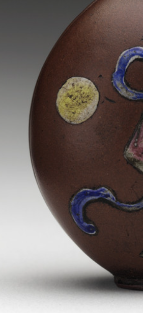 紫砂加彩人物纹鼻烟壶