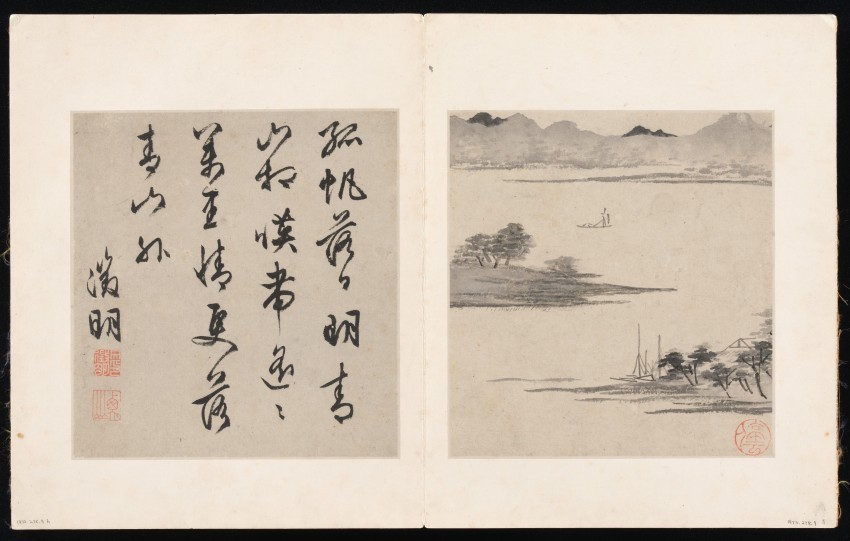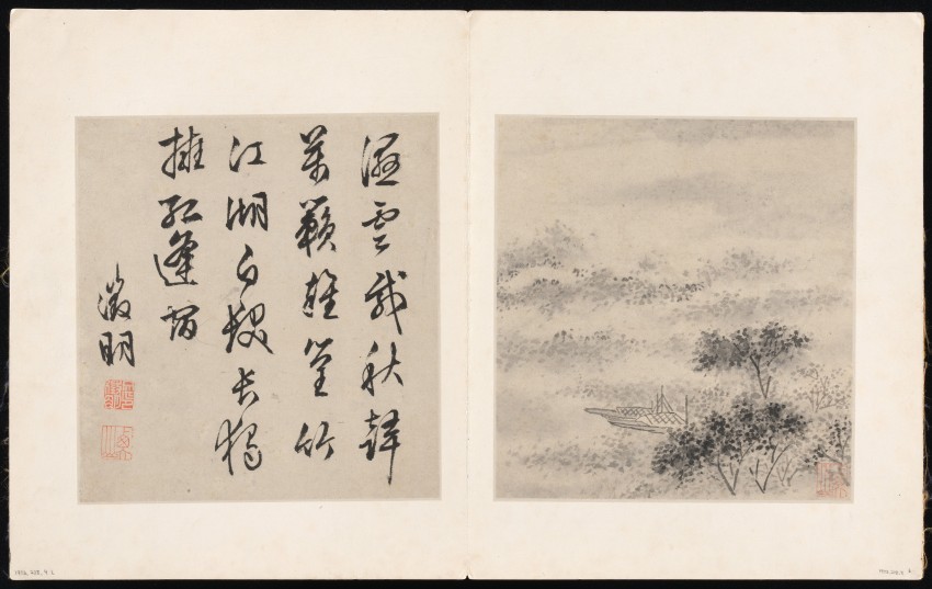 此为明代 16 或 17 世纪仿文徵明风格创作的《潇湘八咏》山水册页,属八开册页,以纸本水墨绘制。包含 8 幅书法对开页画作(尺寸 21.0×19.7 厘米)及 2 幅双开页卷首插图(尺寸 21.0×42.9 厘米),现藏美国大都会博物馆。作品虽署文徵明款,但书画风格缺乏其细腻特质,实为后世仿作,延续 “潇湘八咏” 这一经典诗画题材,体现了对明代文人画风的追摹。