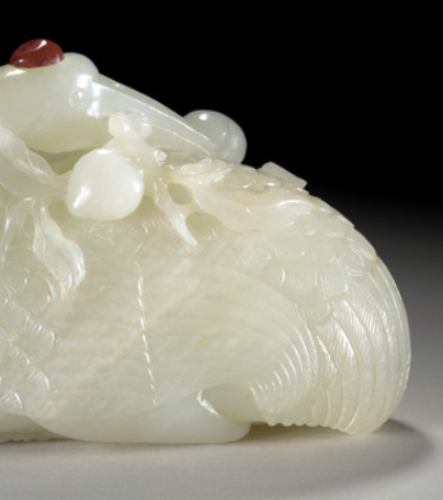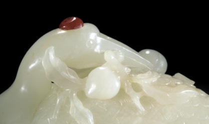 清代贵族阶层生活奢华,对精美工艺品的需求旺盛, 对玉器尤为喜爱。玉器不仅是身份地位的象征, 还蕴含着深厚的文化内涵。白玉嵌宝鹤形摆件造型优美、工艺精湛, 符合贵族阶层高雅的审美情趣,常被摆放在府邸中作为陈设品, 彰显主人的品味与财富。同时,贵族之间也流行收藏各类玉器, 这件摆件也可能是贵族们竞相收藏的对象 。