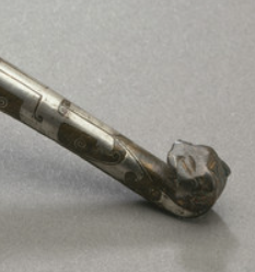 战国时期,服饰制度随着社会变革而不断发展。当时的服装多为宽袍大袖, 需要借助带钩来束紧腰带,以保持服饰的整齐与得体。 带钩逐渐成为人们日常生活中不可或缺的服饰配件, 上至王公贵族,下至普通士人,都普遍使用。 错银青铜带钩凭借其精美工艺和较高的价值, 往往是贵族和富有人家彰显身份与品味的选择。