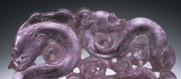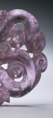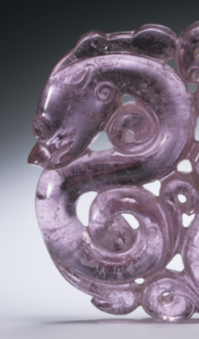 清代推行 “服制治国”,将服饰配饰纳入等级制度体系。玉佩作为 “衣冠禽兽” 礼制的延伸,是身份地位的直观象征。紫水晶虽不及和田玉、翡翠尊贵,但透雕螭龙纹佩工艺精湛,多为贵族阶层(如宗室、高官)所用,既符合 “君子无故,玉不去身” 的传统礼仪,又通过纹饰与材质的稀缺性彰显等级 —— 普通百姓禁用龙纹(包括螭龙变体),此类佩饰的使用需严格遵循朝廷规定,体现皇权对 “器用” 的绝对掌控。